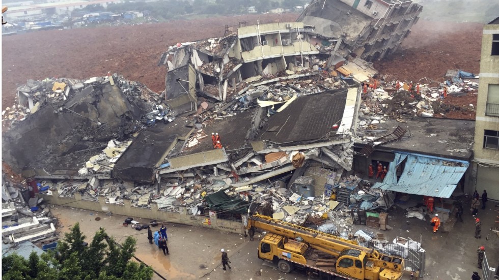 Trente-trois bâtiments ont été ensevelis, dont deux dortoirs réservés aux travailleurs, selon la télévision publique CCTV. Celle-ci ajoute cependant, citant un responsable de la sécurité locale, que la plupart des personnes qui se trouvaient sur les lieux avaient pu être évacuées.