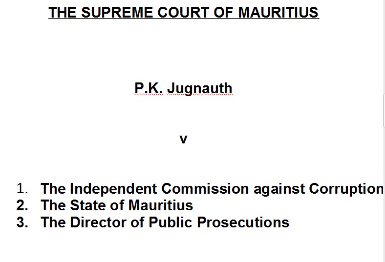 JUGNAUTH P.K. v INDEPENDENT COMMISSION AGAINST CORRUPTION & ORS